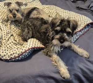 As I’ve mentioned before my 12-year-old Schnauzer Jazz had been staying with her brother Apollo with my sister’s family in Pickering since I first went into the hospital on Christmas Eve. She was diagnosed with diabetes a couple of years ago which I’ve been treating with twice-daily insulin shots. She eventually developed cataracts which severely limited her sight but she seem to adapt well.