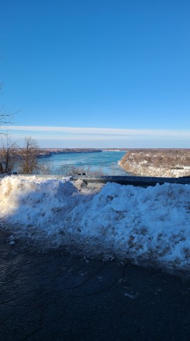 After lunch, we headed back up the Niagara Parkway to Niagara Falls. I feel I need to provide a disclaimer about ever visiting the falls without bringing a visiting tourist along LOL. Certainly in the summer, I do my best to avoid the town completely. But a winter visit every few years reminds me of the magical side of the falls as the spray freezes on the railings and trees along the canyon sides. And despite the amazingly powerful flow of the Niagara River, ice forms around the falls as well and forms a new pair of clothes for the season. Like many of the other visitors – a fraction of those there in the summer – we stopped at Table Rock and while it was sunny but very cold, the views were spectacular.